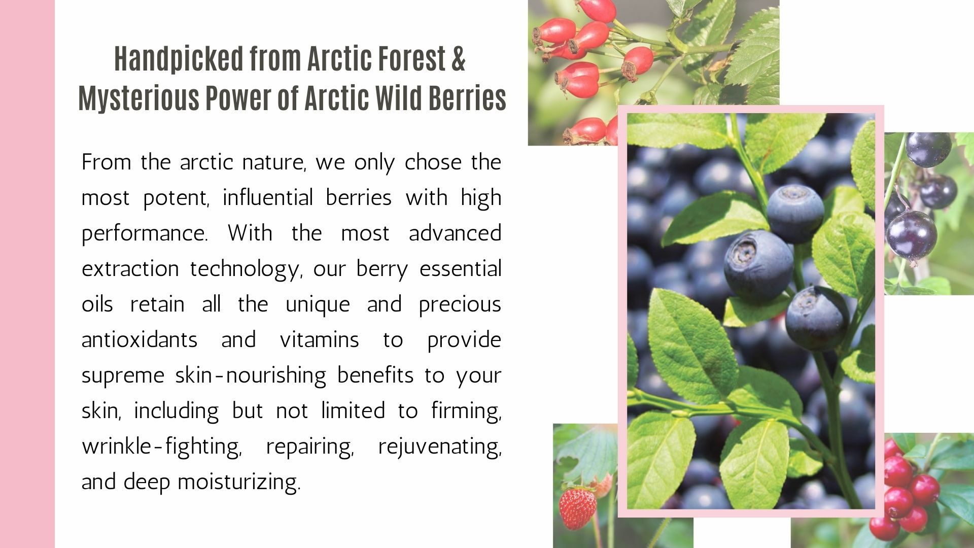 organic jojoba oil, organic glycerin, organic castor oil, organic almond oil, organic virgin coconut oil, organic sunflower seed oil, sucrose laurate, arctic bilberry seed oil, arctic blackcurrant seed oil, organic orange flower water, organic lemon essential oil, organic rosemary leaf extract, sucrose stearate, sucrose palmitate.
