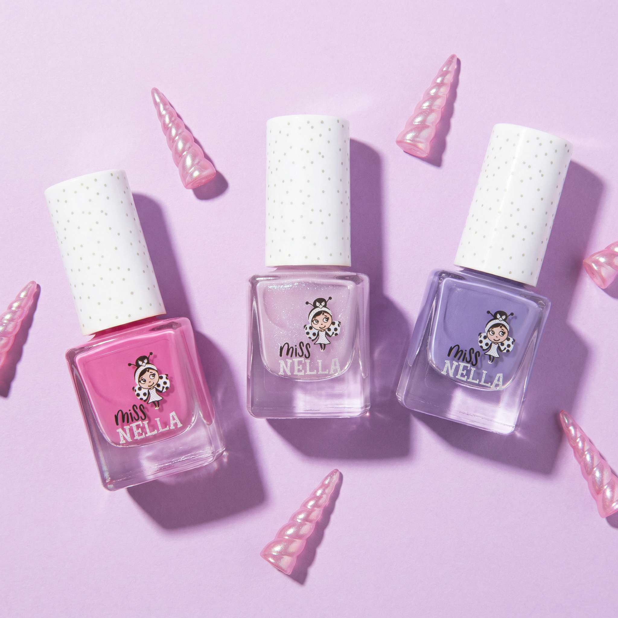 A magical collection of three enchanting purple shades, perfect for little princesses who love dreamy and mystical looks! 100% water-based, non-toxic, odour-free and alcohol-free formula that is gentle and safe for children aged 3+. Let your child sparkle with purple magic every day!