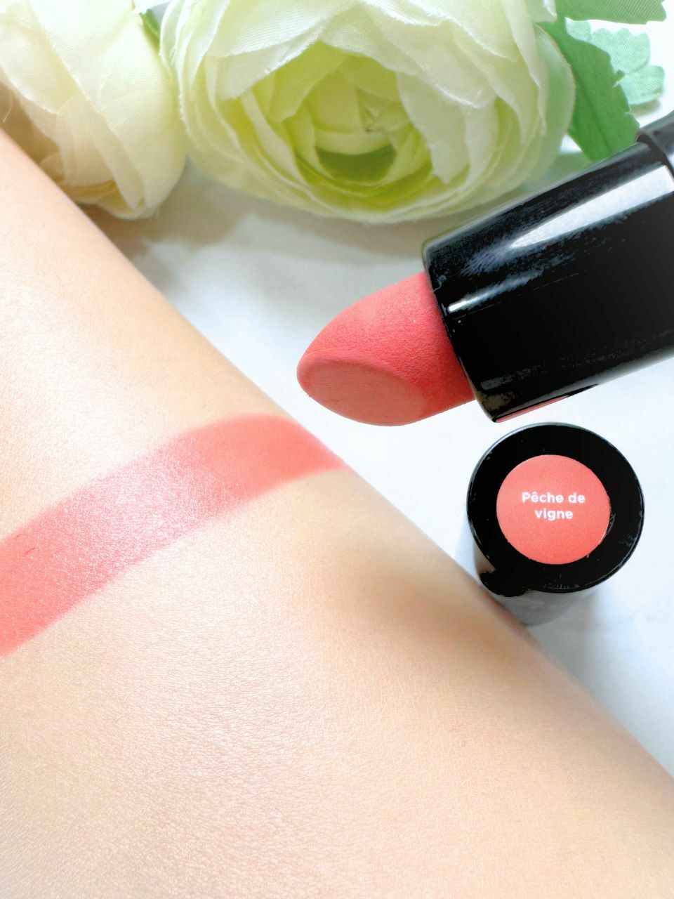 Peche De Vigne 法式蜜桃色,像蜜桃般的橙粉紅色,甜美而活潑,深淺適中,時尚奪目。偏暖色調,溫暖的氣息,讓人更有親和力,完全不挑膚色,很適合偏黃膚色的女生,還有很好的顯白效果呢!