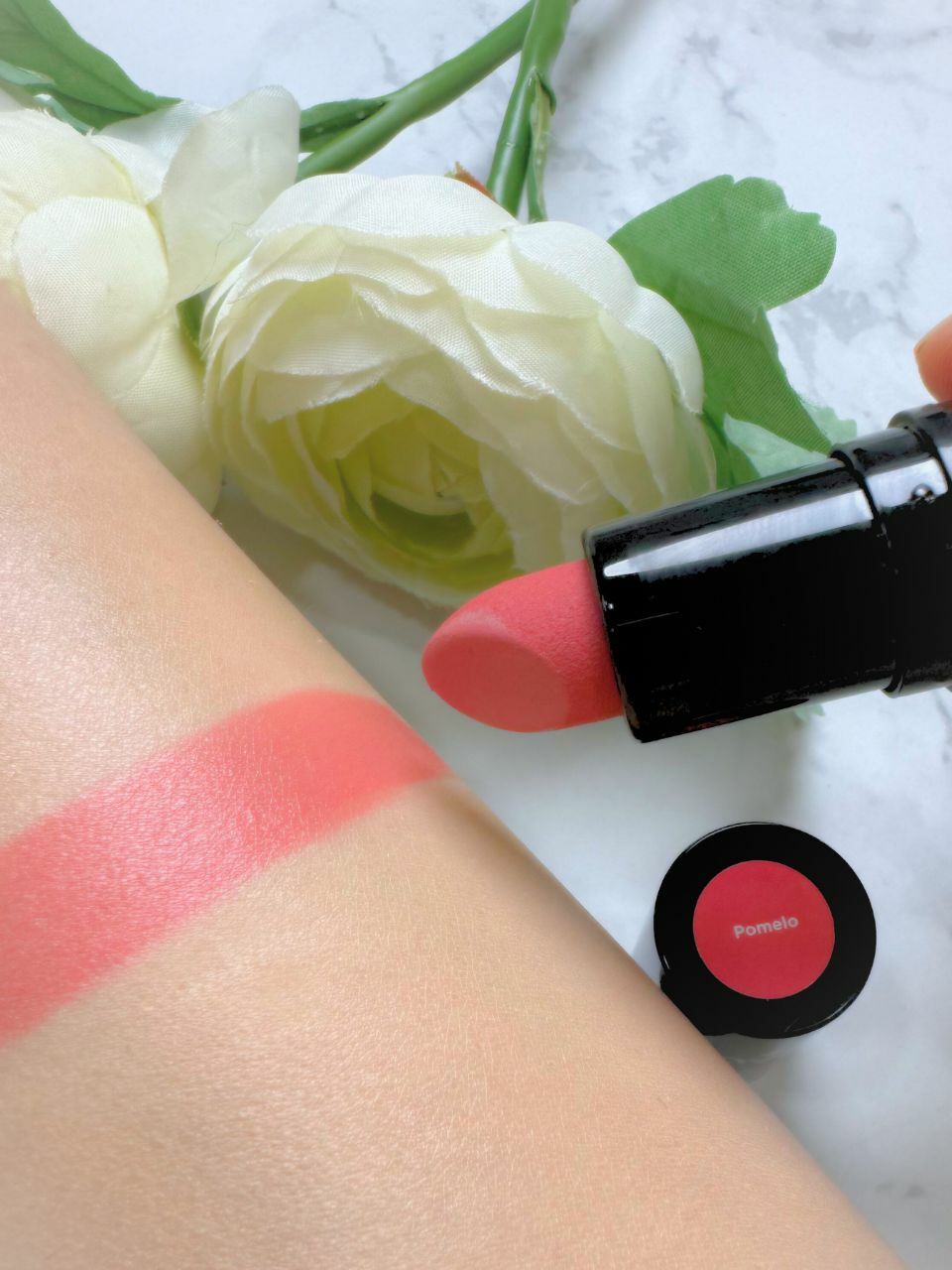Pomelo 柚子,是深受女生喜愛的珊瑚粉紅色,淺中粉紅色調,明亮而活潑,令人增添親和力和活力,精神而不過於嬌媚,展現開朗迷人的女神氣息。溫暖的底色調,完全不挑膚色,很適合偏黃膚色的女生,還有很好的顯白效果呢!
