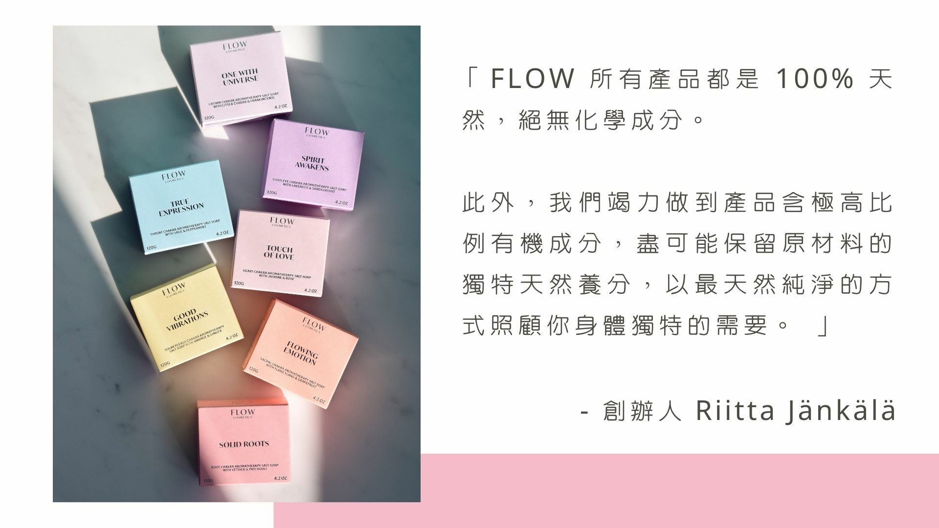 用包裝內所配的竹匙舀出一匙分量,在全乾或微濕的面部肌膚打圈按摩至彩妝溶化,加少量清水在手心,打圈按摩面部至乳化為奶白色,再以溫水徹底洗淨,或用 FLOW 有機玫瑰水噴洗抹淨。