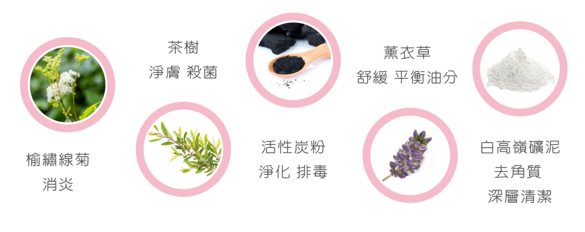蘊含強效活性椰炭粉及殺菌淨膚的茶樹精油,有效深層清潔肌膚並帶走雜質、污垢及油脂。秘密配方是北歐野生的榆繡線菊,被稱為自然界的阿司匹林,因為它含有舒緩炎症的天然水楊酸。適合面部和全身肌膚。定期使用可以避免毛孔堵塞,不會令肌膚乾燥。