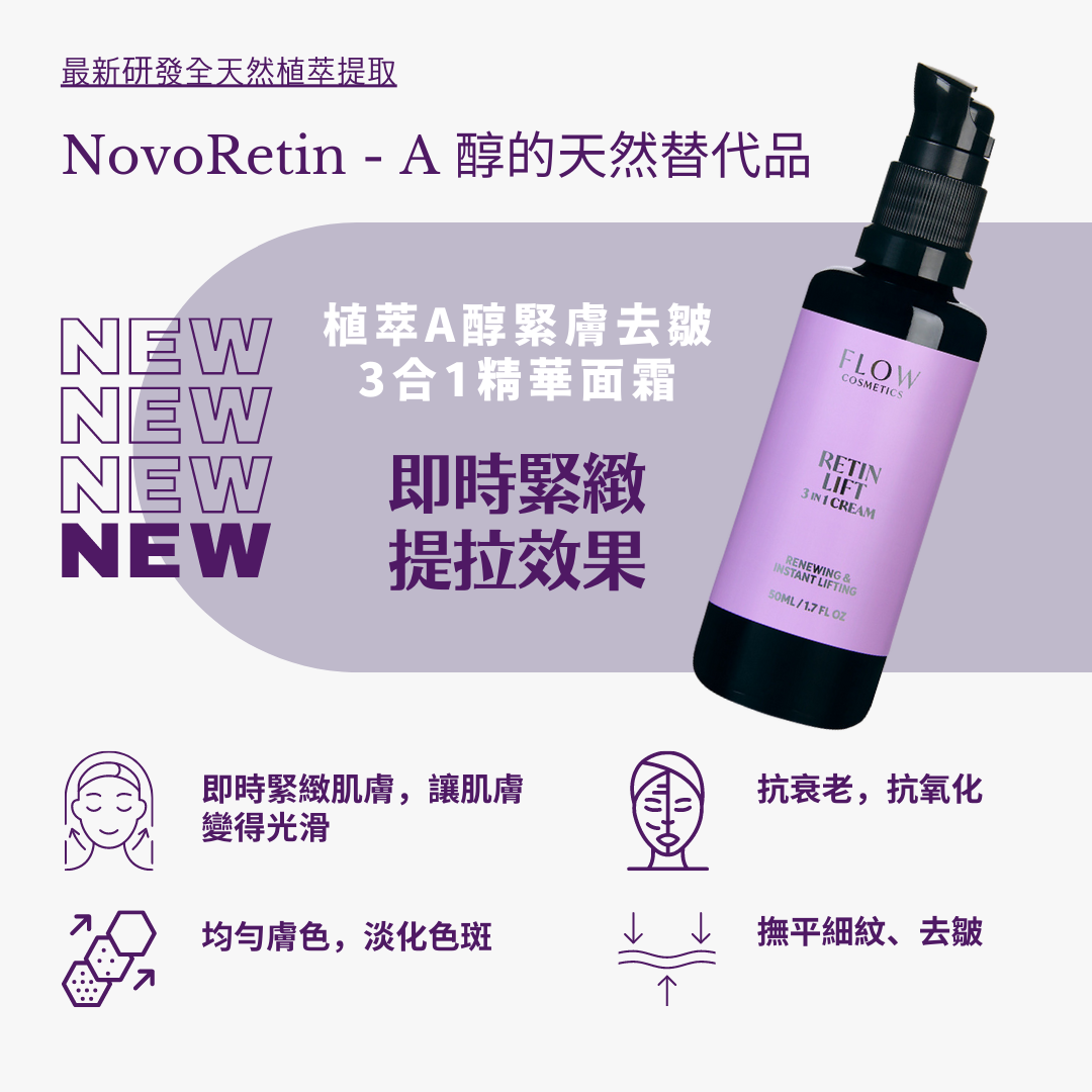 全日 24 小時每論任何時候任何場會皆可使用 FLOW COSMETICS 植萃A醇緊膚去皺3合1精華面霜。
