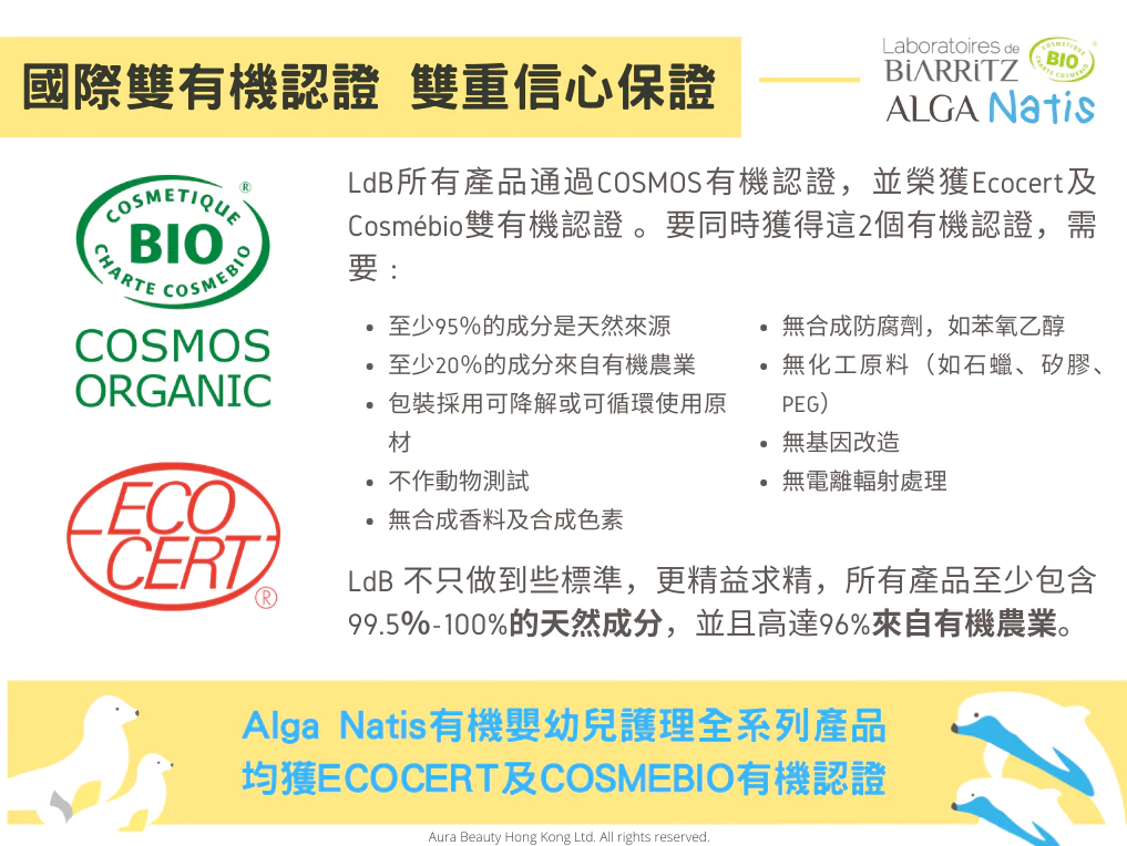 獲 Ecocert Greenlife 專業認證機構確認為 COSMOS ORGANIC 天然有機產品: