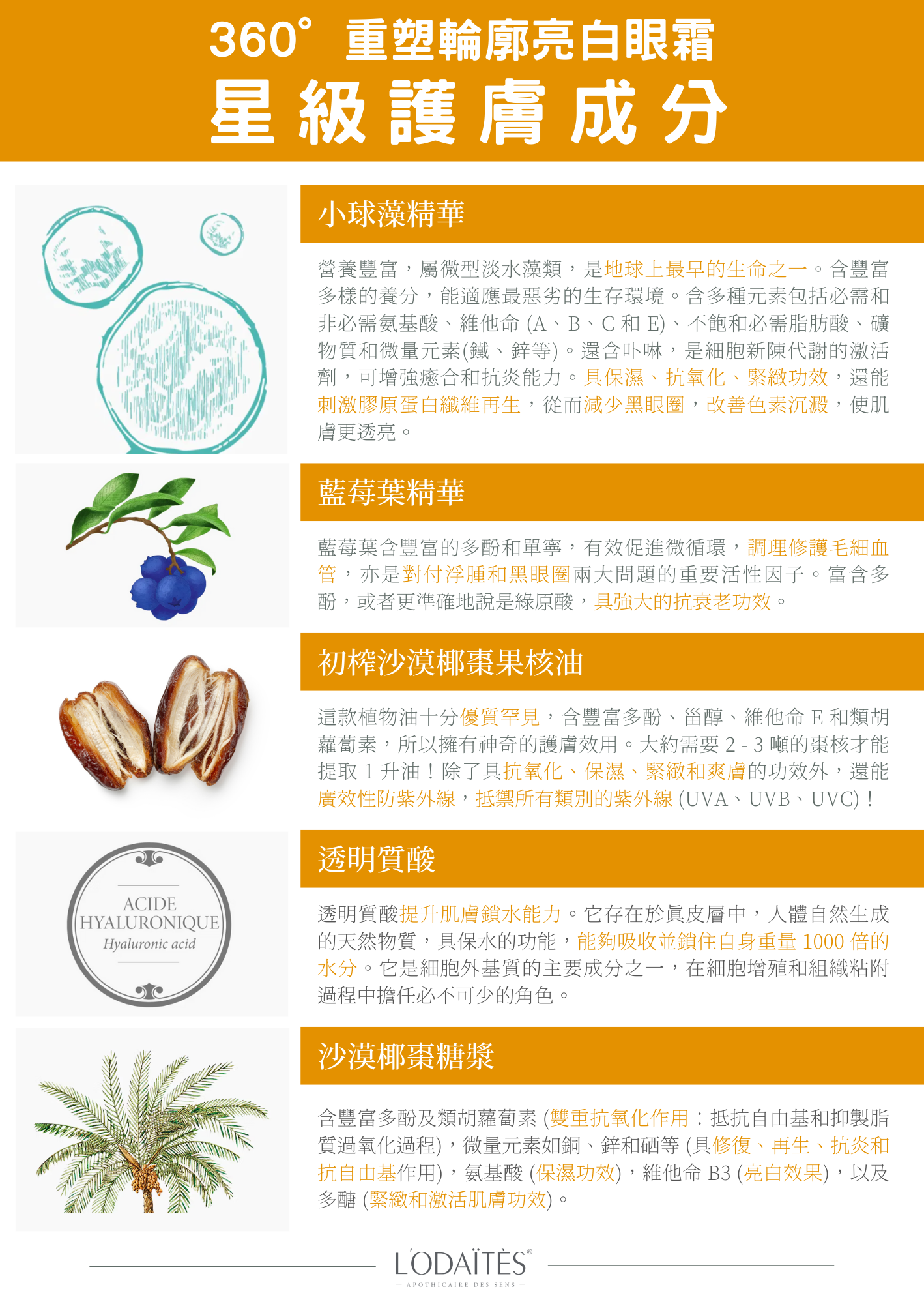 提亮眼周肌膚,促進細胞再生,重塑年輕緊緻的眼部輪廓,讓眼睛更美更亮。小球藻是一種球形單細胞藻類,是地球上最早出現的生命體之一,含高濃度氨基酸和寡肽,有效淡化黑眼圈,促進細胞新陳代謝。