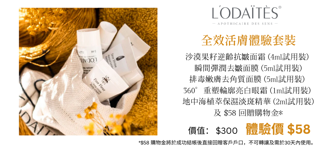 L'ODAÏTÈS 全效活膚體驗套裝包括多款產品的試用裝,必定令你一試難忘。