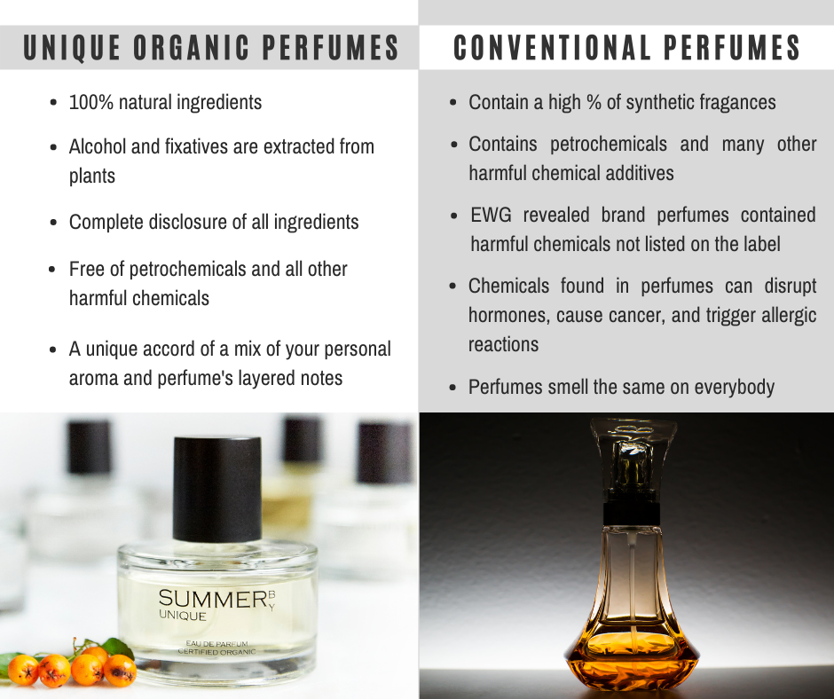 Are you aware that the perfumes you apply on your body and inhale is from the synthesis process in the lab? And they are harmful? A report by EWG and CSC revealed that brand perfumes contain many secret petrochemicals not listed on labels and multiple toxins that can disrupt hormones, cause cancer, or trigger allergic reactions such as asthma, headaches, wheezing or contact dermatitis.